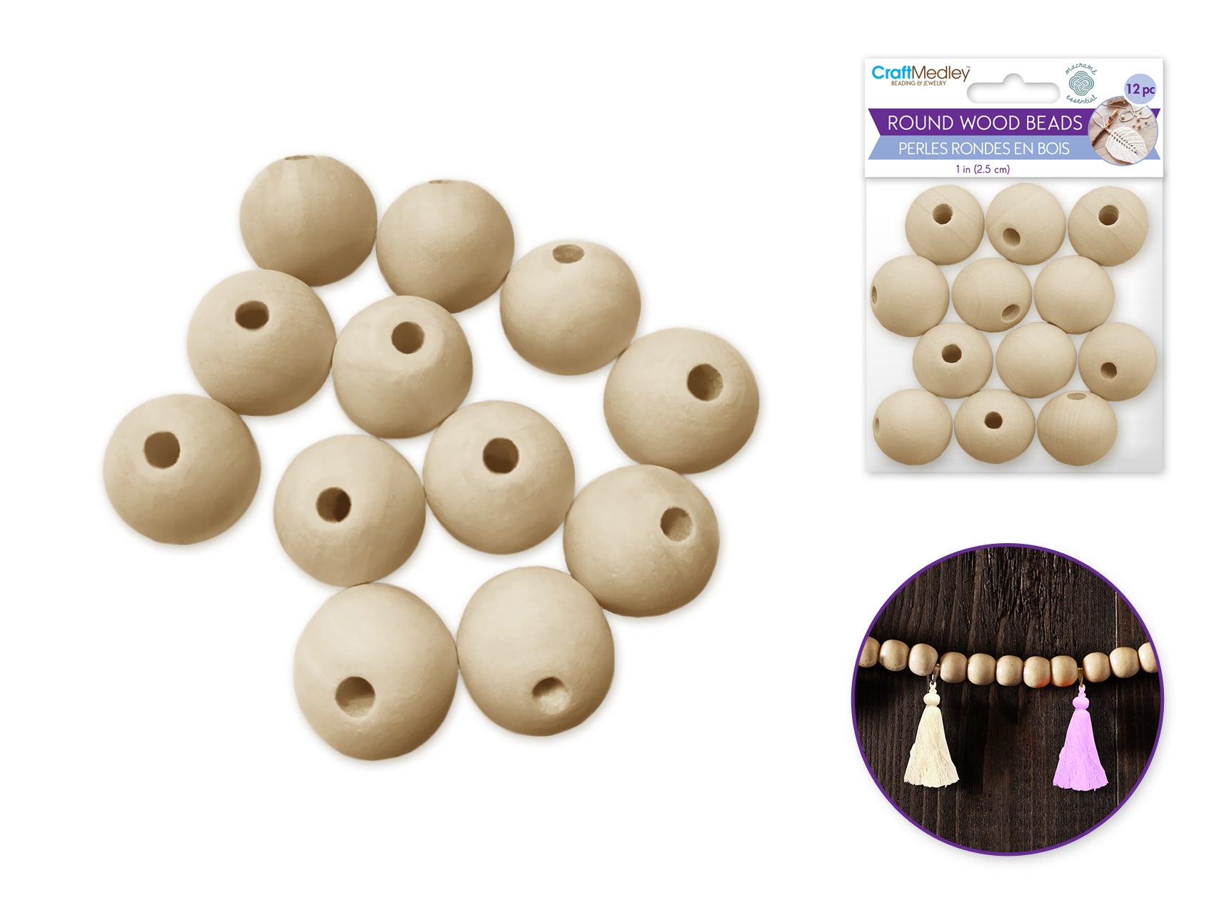 Wood Craft: Round Beads Natural G) 25mm 12pc