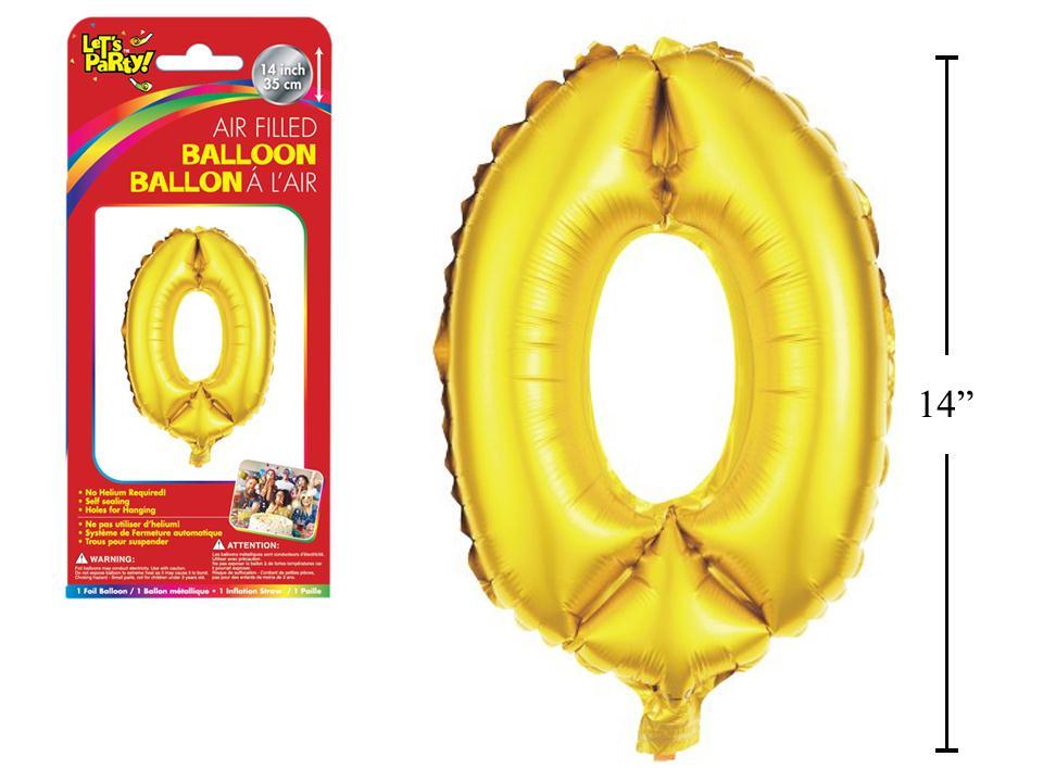 Let's Party "0" Gold Air Filled Balloon,14" Polybag w/insert