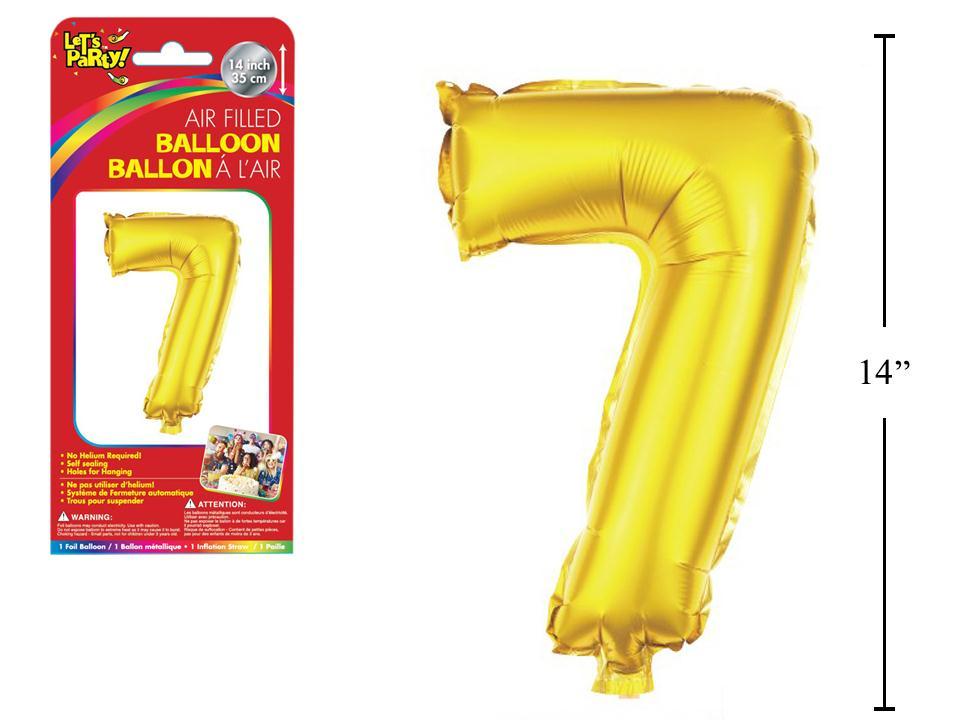 Let's Party "7" Gold Air Filled Balloon,14" Polybag w/insert