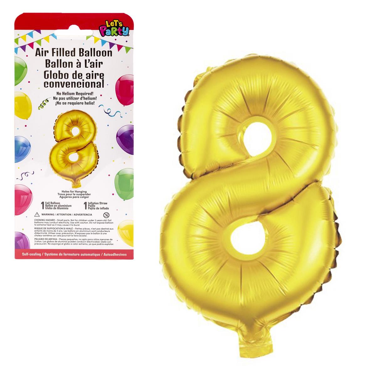 Let's Party "8" Gold Air Filled Balloon,14" Polybag w/insert