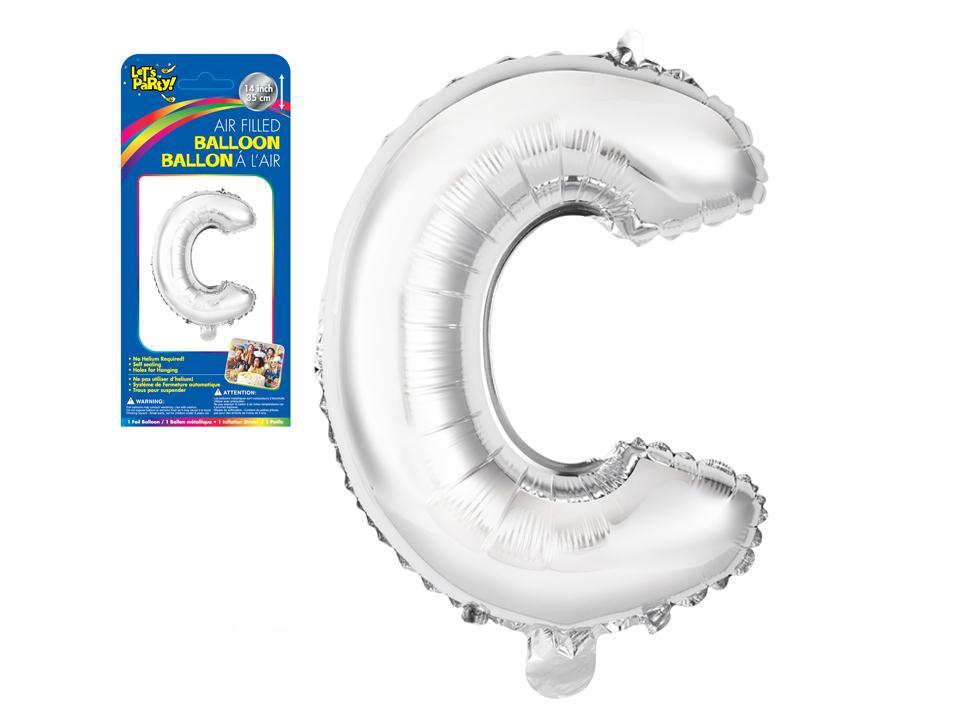 Let's Party "C" Silver Air Filled Balloon, 14" Polybag w/insert