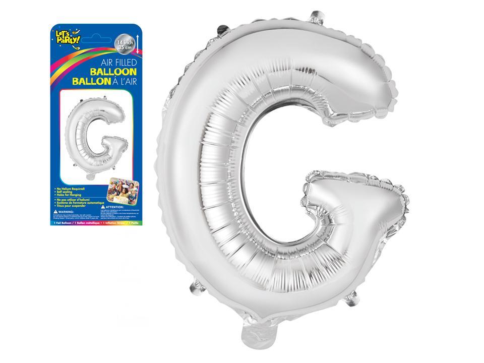 Let's Party "G" Silver Air Filled Balloon, 14" Polybag w/insert
