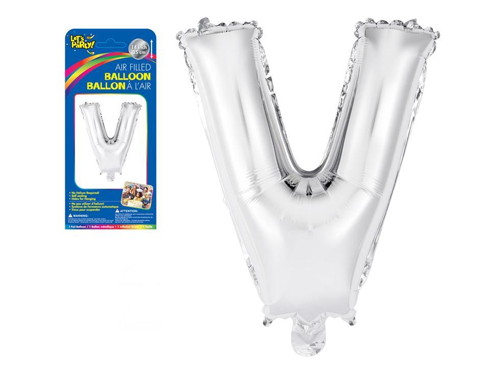 Let's Party "V" Silver Air Filled Balloon, 14" Polybag w/insert