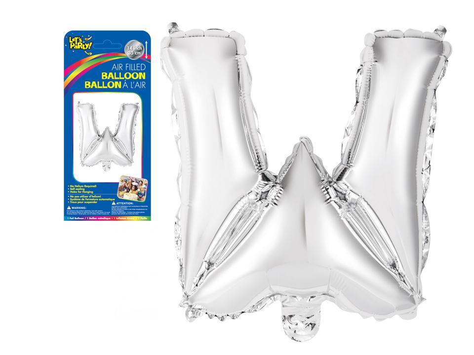 Let's Party "W" Silver Air Filled Balloon, 14" Polybag w/insert