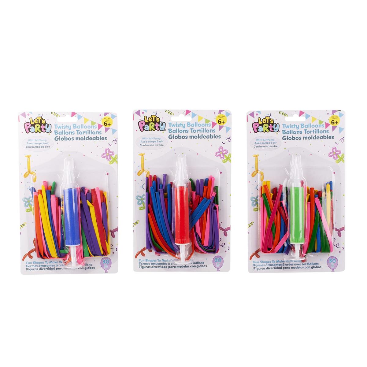 Lootbag Exp. 30-pc Twisty Balloon w/Air Pump, 3 col., b/c