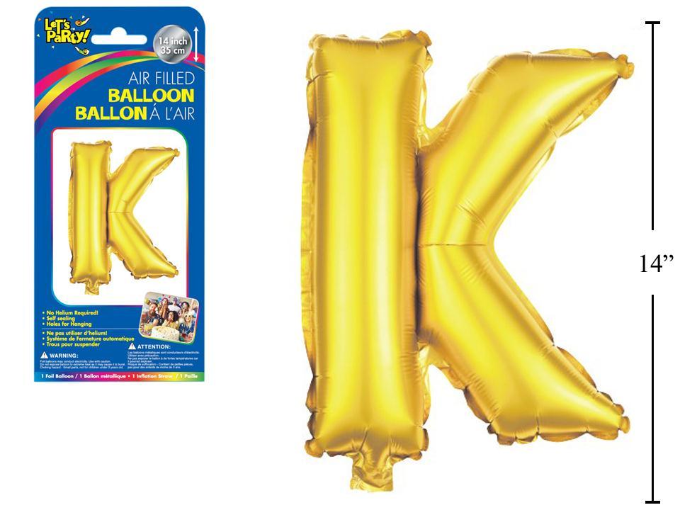 Let's Party "K" Gold Air Filled Balloon,14" Polybag w/insert