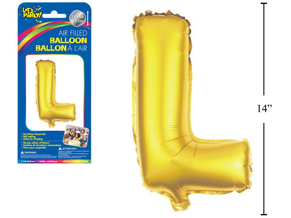 Let's Party "L" Gold Air Filled Balloon,14" Polybag w/insert