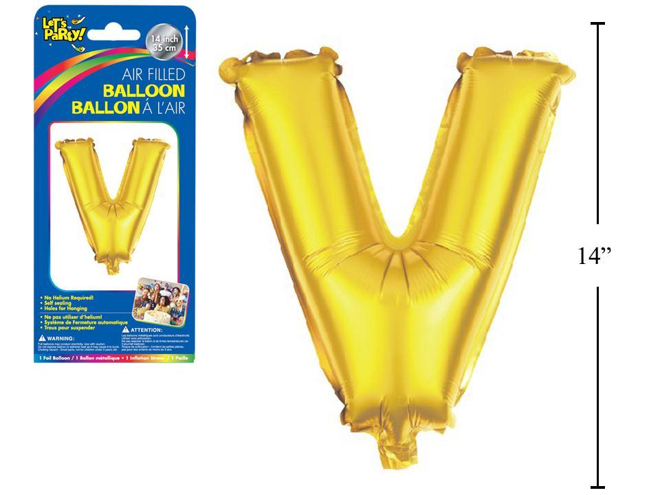 Let's Party "V" Gold Air Filled Balloon,14" Polybag w/insert