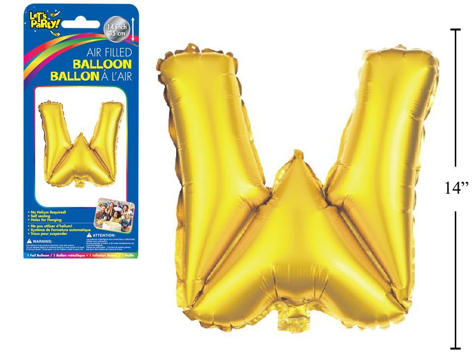 Let's Party "W" Gold Air Filled Balloon,14" Polybag w/insert