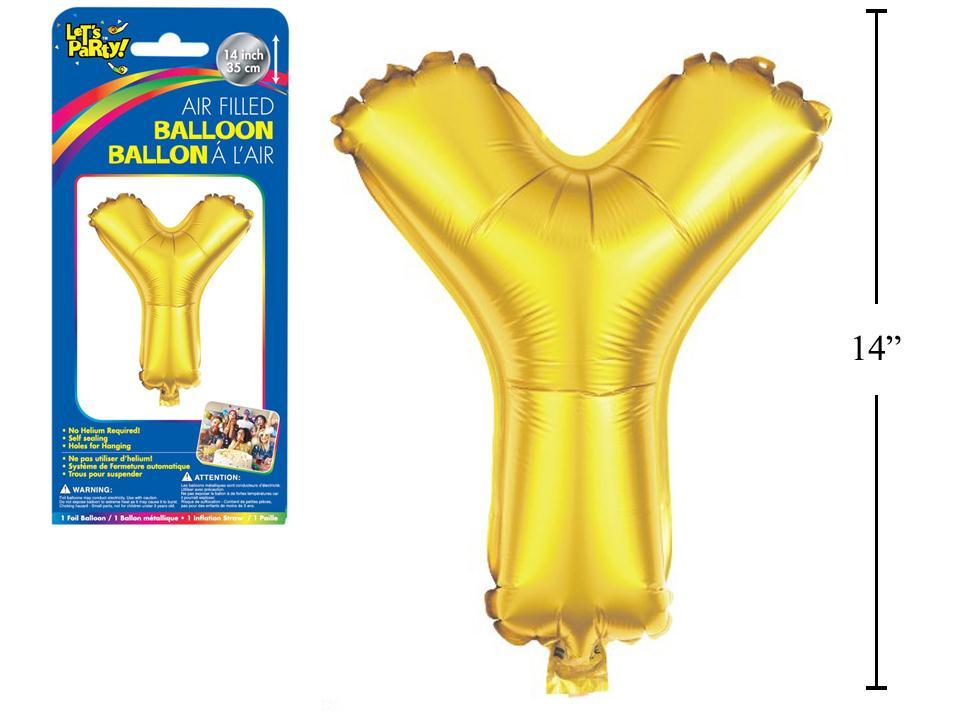 Let's Party "Y" Gold Air Filled Balloon,14" Polybag w/insert