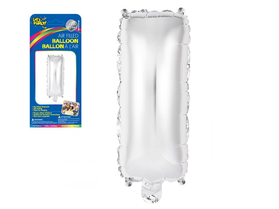 Let's Party "I" Silver Air Filled Balloon, 14" Polybag w/insert