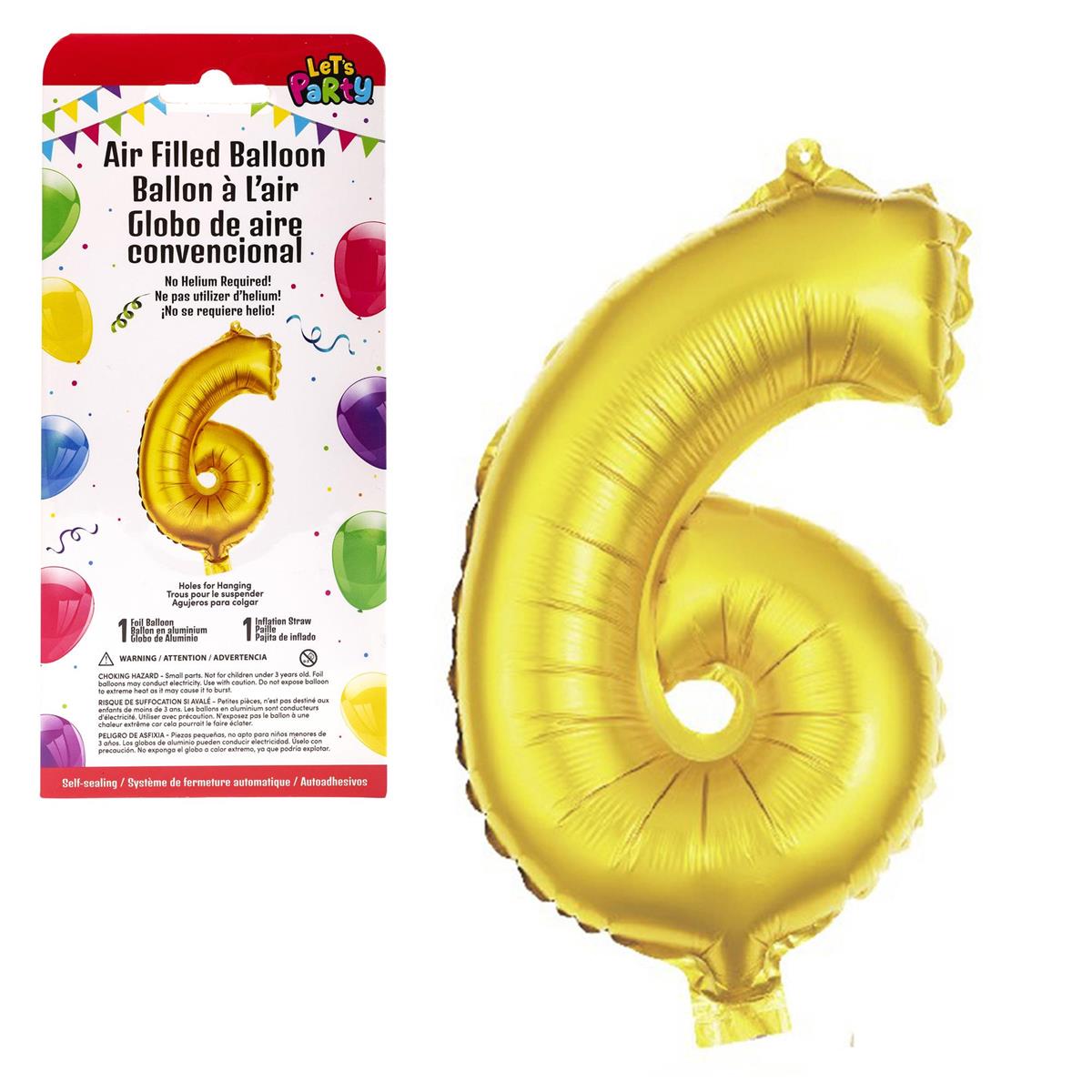 Let's Party "6" Gold Air Filled Balloon,14" Polybag w/insert