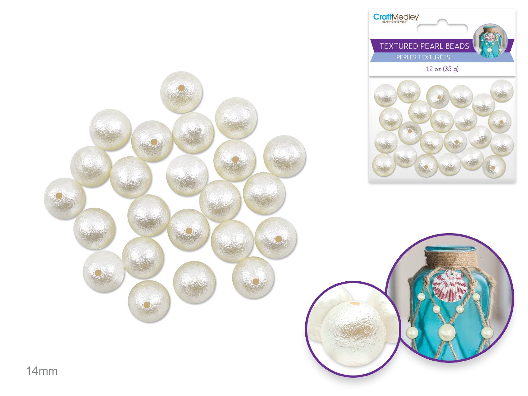 Pearl Beads: Acrylic Textured Effects Ivory 35g E) 14mm