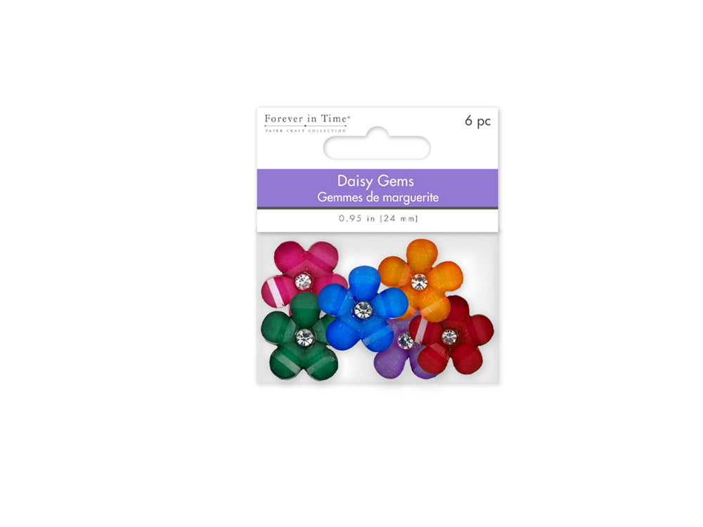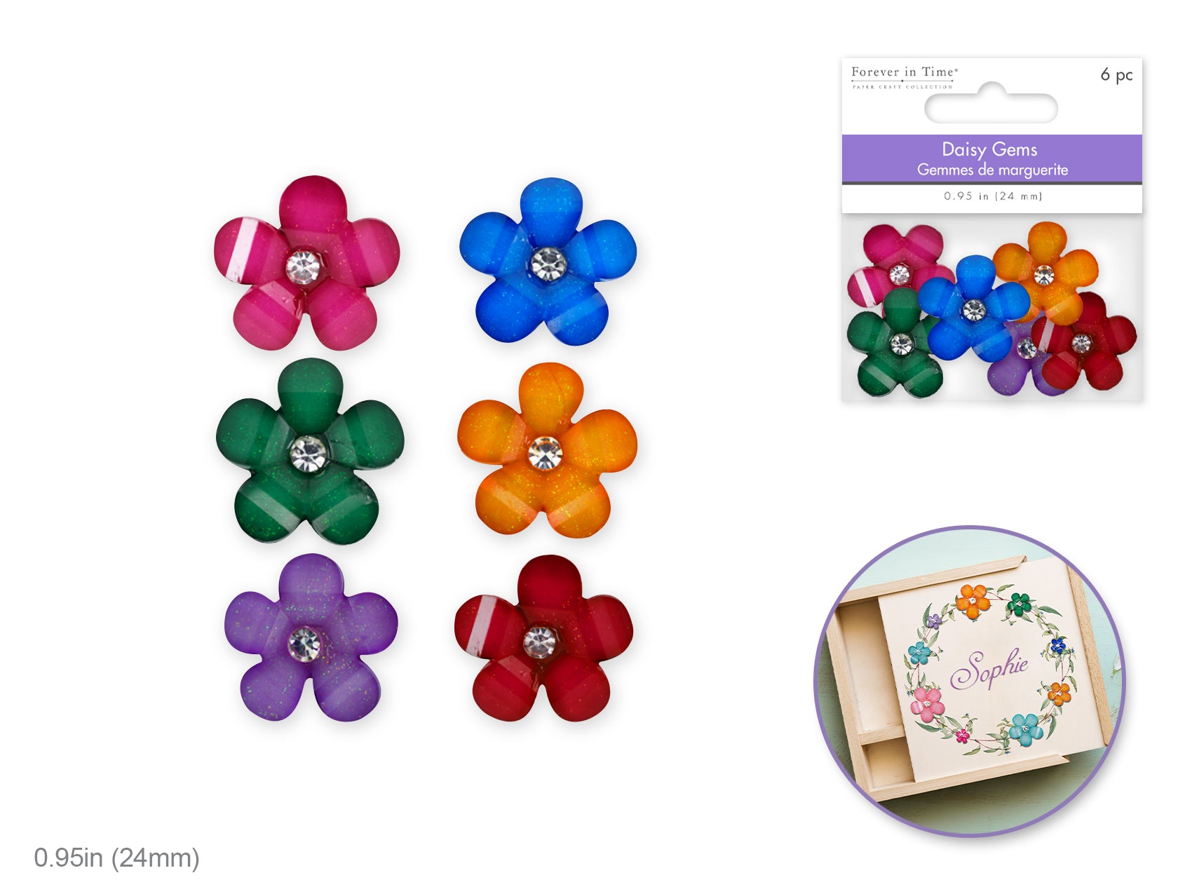 Paper Craft Embellishment: 24mm Glitter Daisy Gems 6pc with 4mm Crystal Asst 6-col - Bold Medley Qty : pack of 1