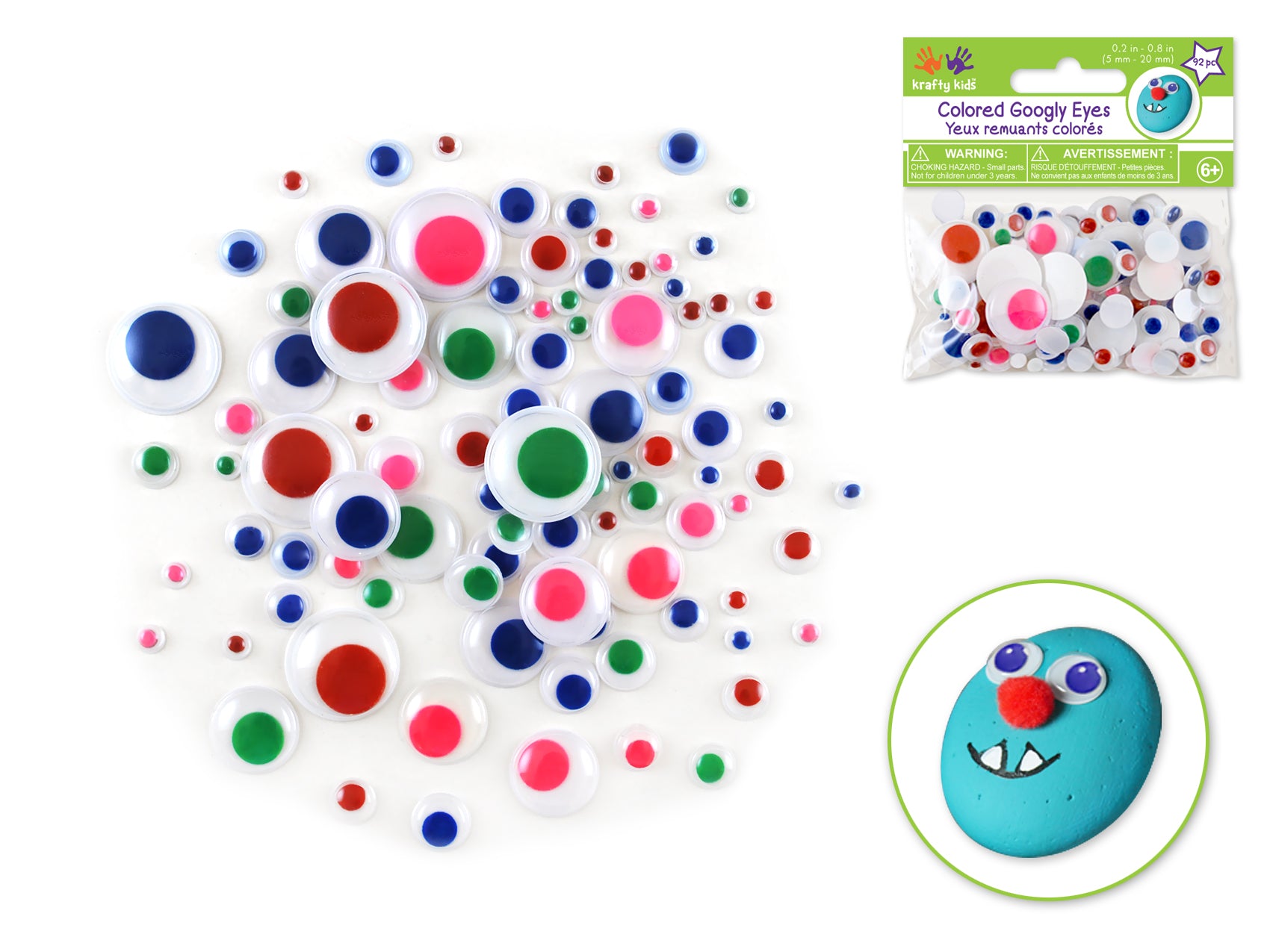 Paste-On Googly Eyes: Round 5mm-20mm Asst Colors 92/pk BLUE/GREEN/RED/PINK/YEL