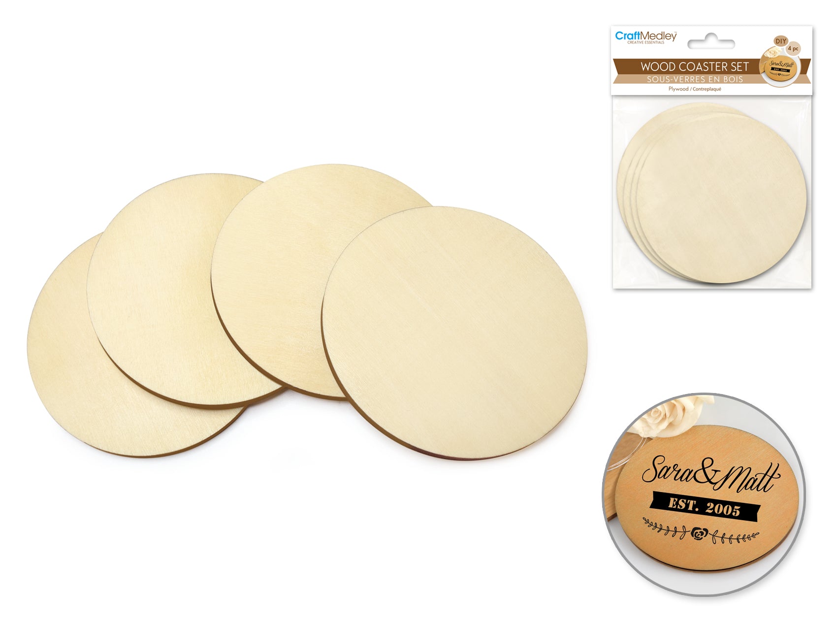 Craftwood: 9.5cm DIY Plywood Coasters 4pc 5mm(T) A) Round