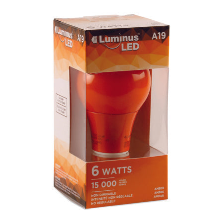 LUMINUS LED A19 AMBER LIGHT BULB1/PK