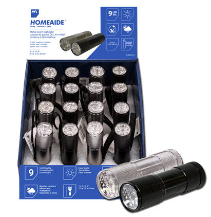 Item Name: METAL LED FLASHLIGHT - 9 LED 16PCS PER DISPLAY