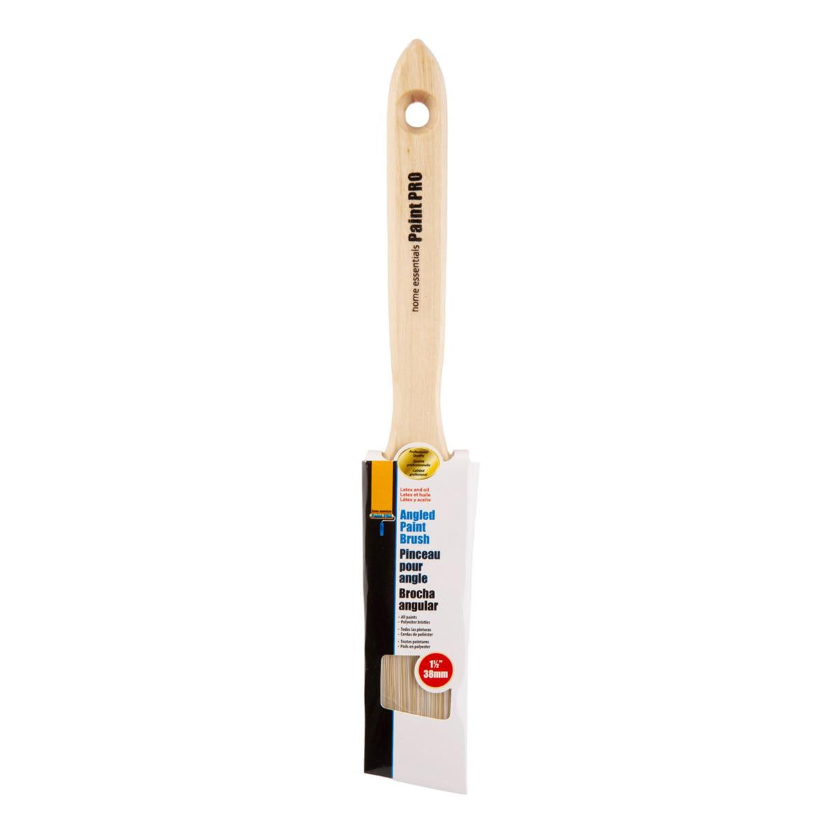 H.E. Paint Pro, 1.5" Angled Paintbrush, Wooden Handle, slv card