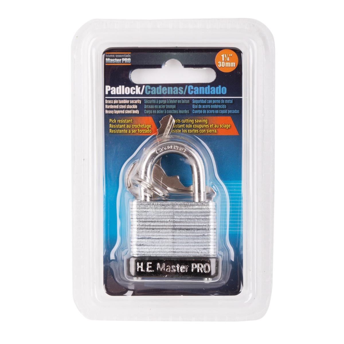 H.E. Master Pro, 1.25" Laminated Padlock, clamshell