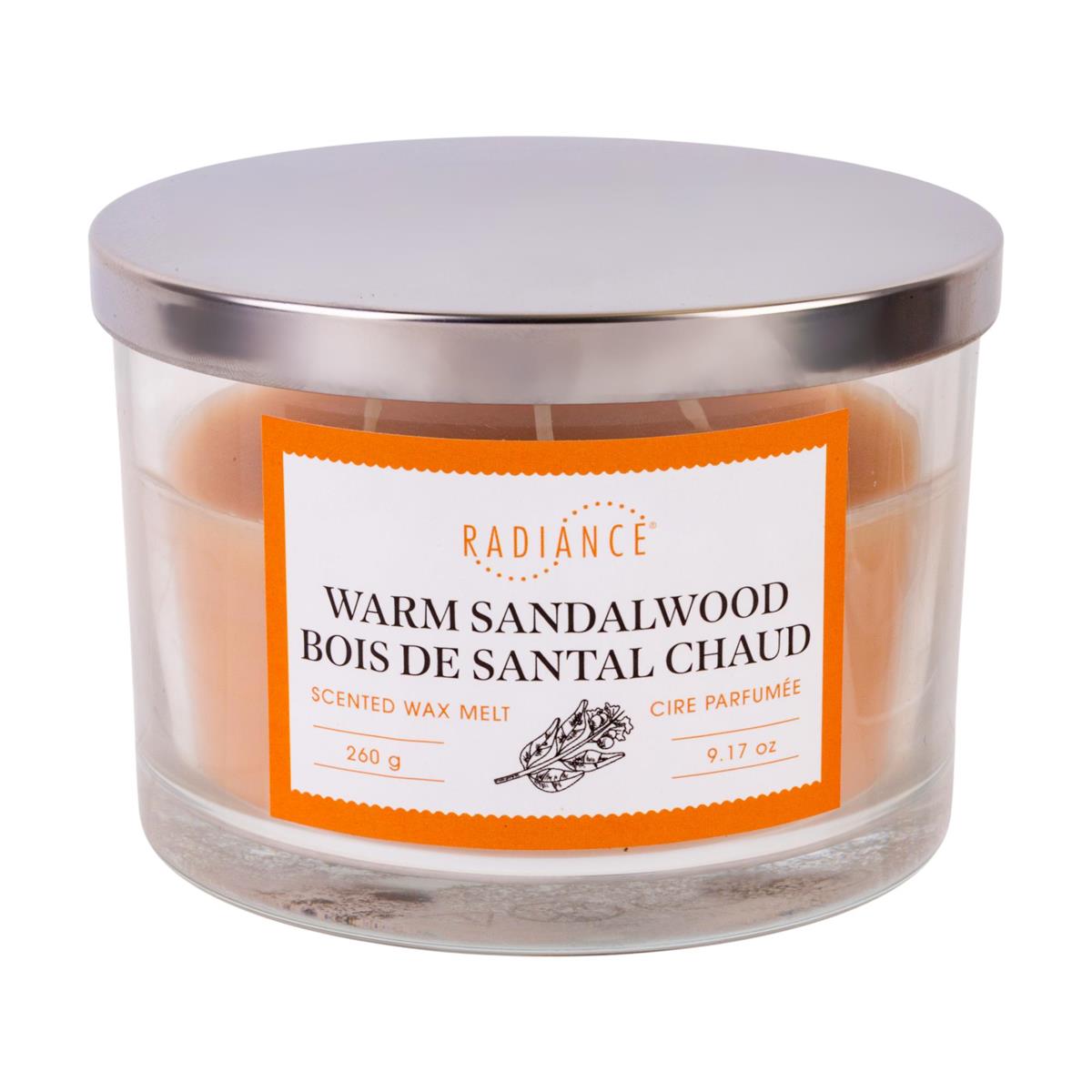 9.5oz Glass Jar Scented Candle, 3-wick w/Lid, Warm Sandalwood
