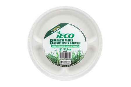 iECO 10" BAGASSE PLATE 3 COMPARTMENT 8/PK X 24/CS