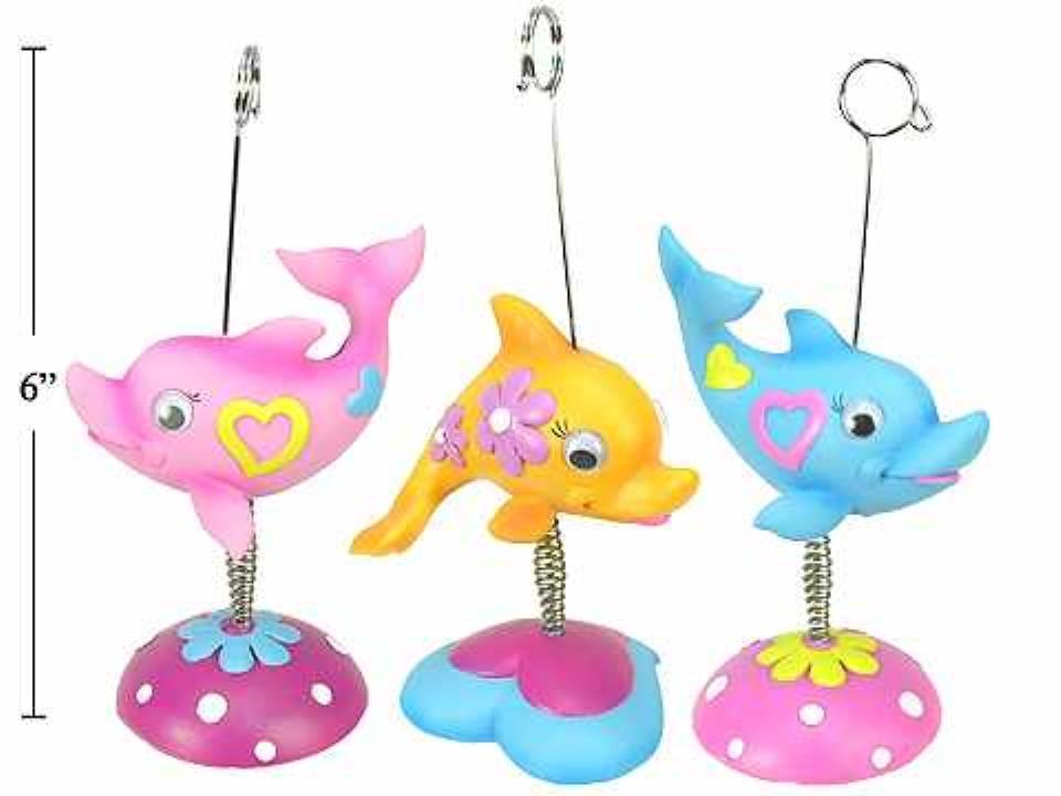 Dolphin Photo Clip, 6.5"Polyresin Single Metal Holder ,3 col.