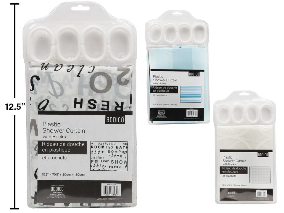 Bodico 70.5"x70.5" Shower Curtain, with Hooks,3 styles, clam pack