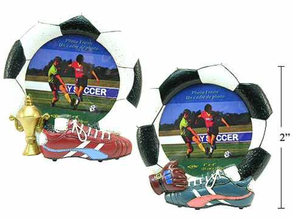 2x2" Round Soccer Photo Frame, Polyresin, 2 styles, bubble wrap