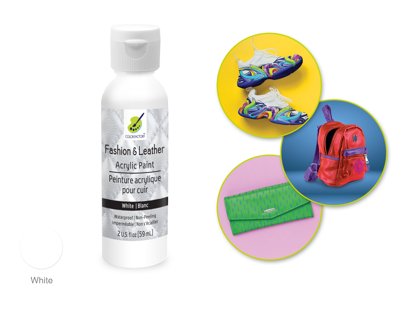 This specially formulated flexible Fashion & Leather Acrylic Paint penetrates surfaces to create a durable finish. Use to restore cracked or faded sneakers, purses, fashion & décor items and more. Paint can be layered for a buildable, thicker coat.