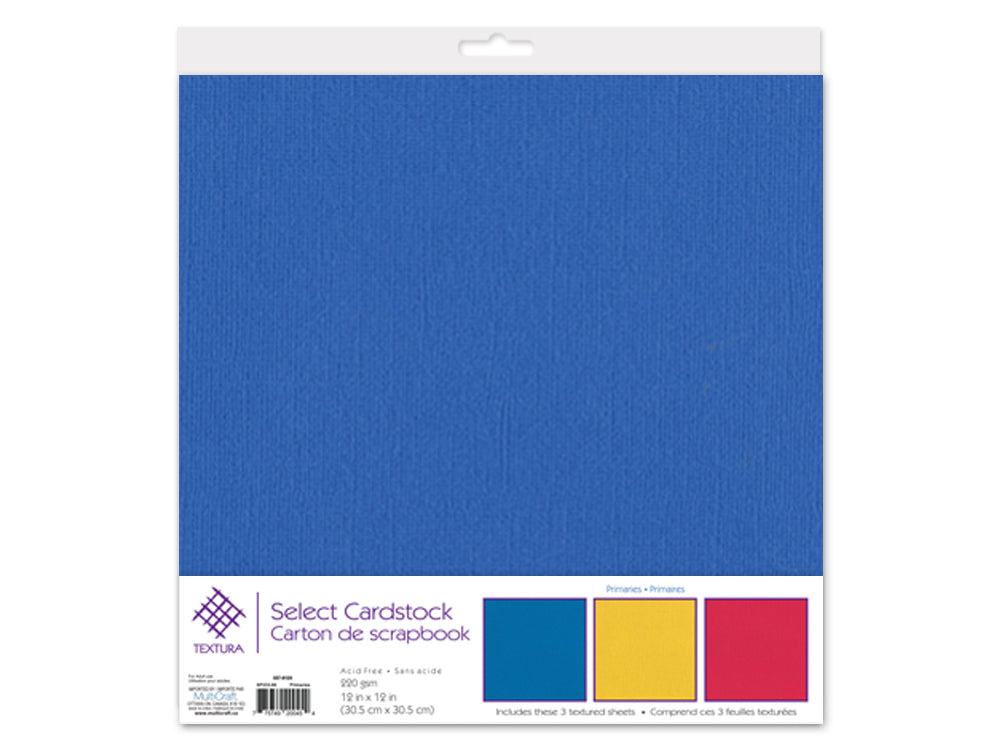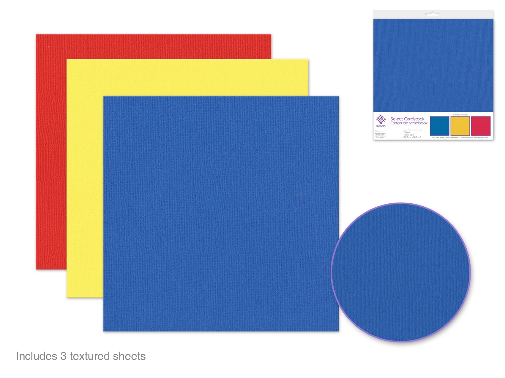 Scrapbook Paper: 12"x12" Textura Select Cardstock x3 Asst Pre-Packaged - Primaries