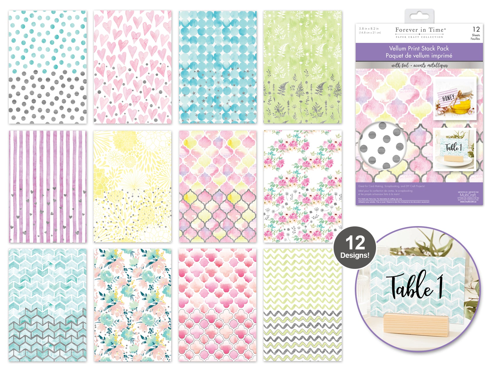 These beautifully designed Vellum Print Stack Packs are an essential for all your Paper Crafting Projects. Each pack has a variety of designs and 12 sheets. Great for Card Making Scrapbooking & DIY Craft Projects!