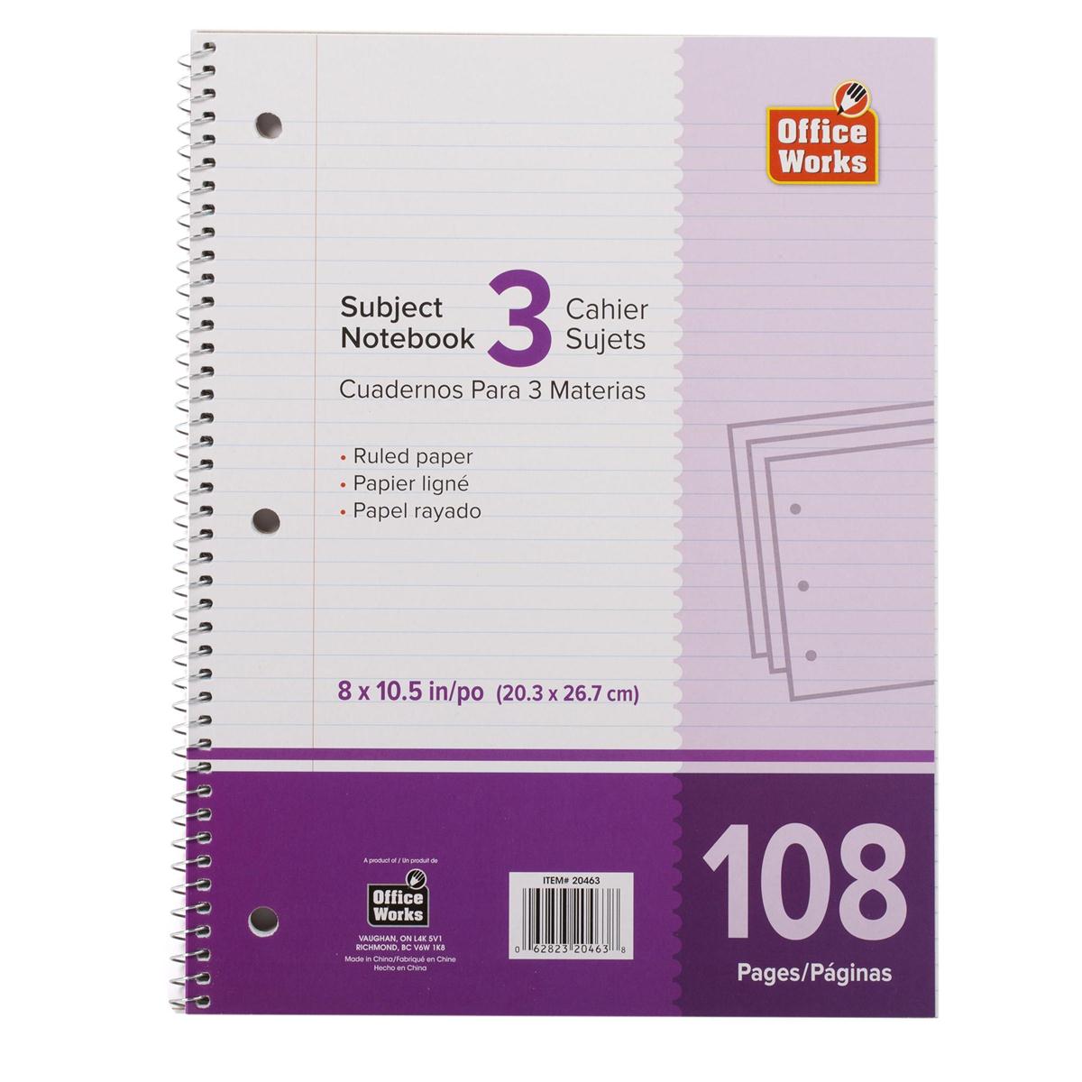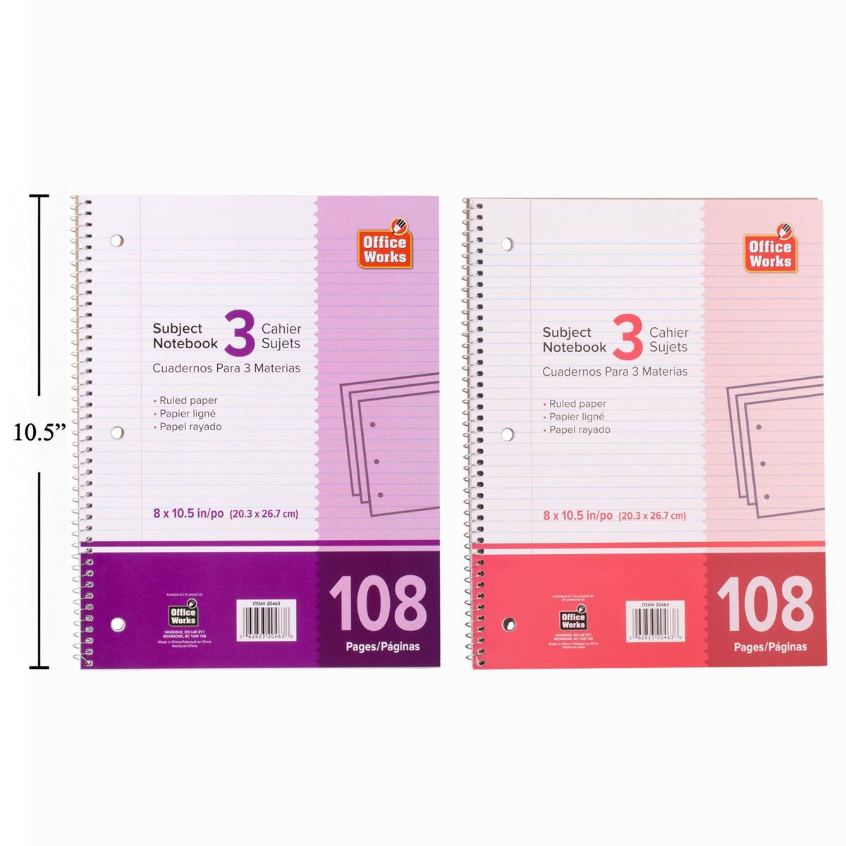 O.WKs. 108-page 3-subject Coil Book 8x10.5"