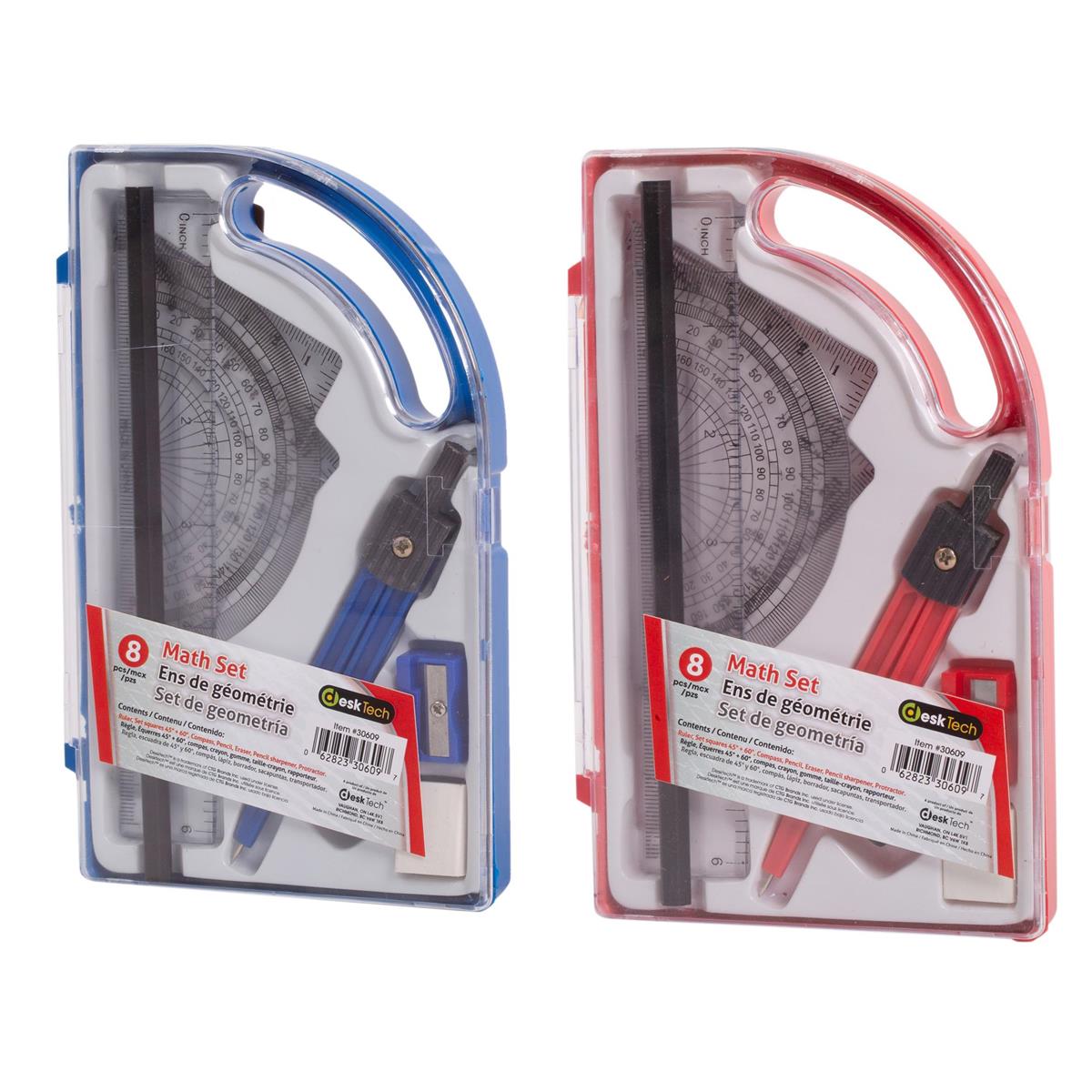 Desk Tech 8-pc Plastic Math Set, 2 col., Plastic Box