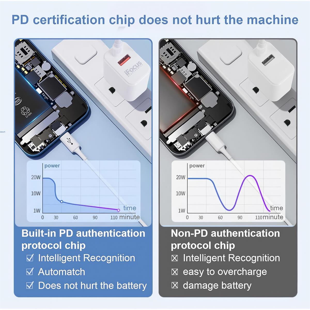 iFocus Dual PD+QC 20W USB Charger, WHT, 5V-12V/3A-1.5A shared power