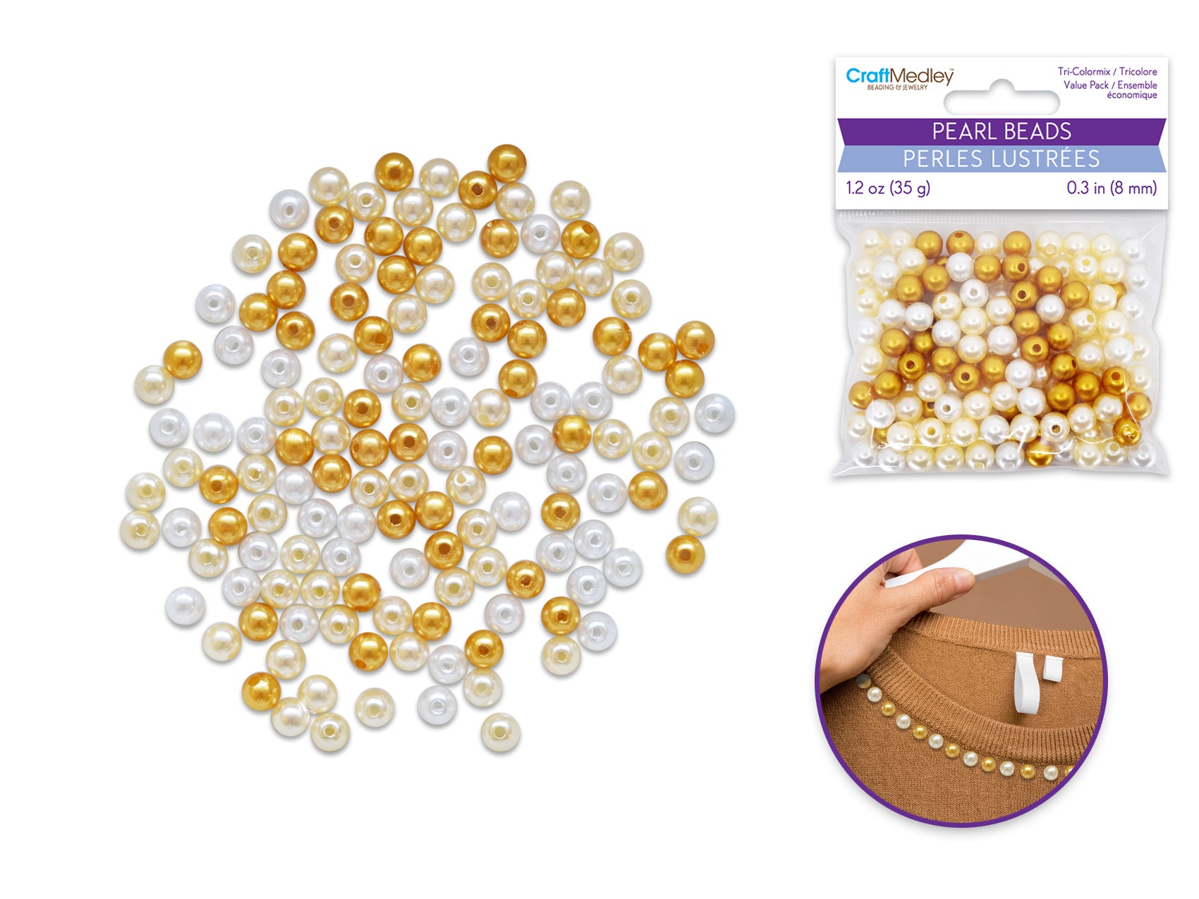 Pearl Beads: 8mm Gloss Tri-Colormix 35gms D) Gold