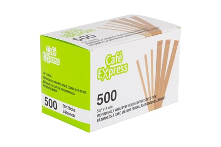 CAFE EXPRESS WRAPPED WOODEN COFFEE STICKS 5.5" 500/PK x 10/CS