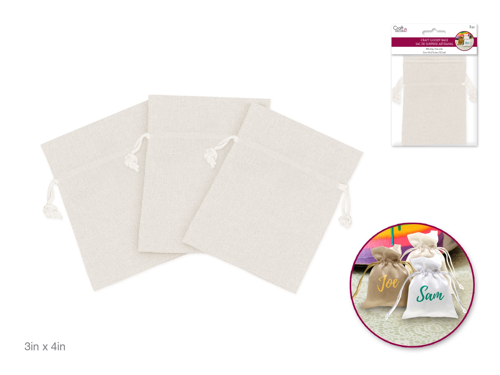 Craft Decor: 3"x4" Craft Goody Bags x3 Poly-Weave w/Rib String B) Cream