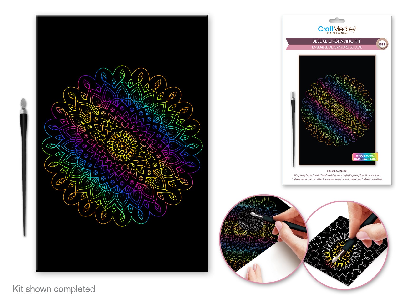 Craft Medley Kit: Deluxe Engraving Art DIY Kit D) Holographic~ Mandala