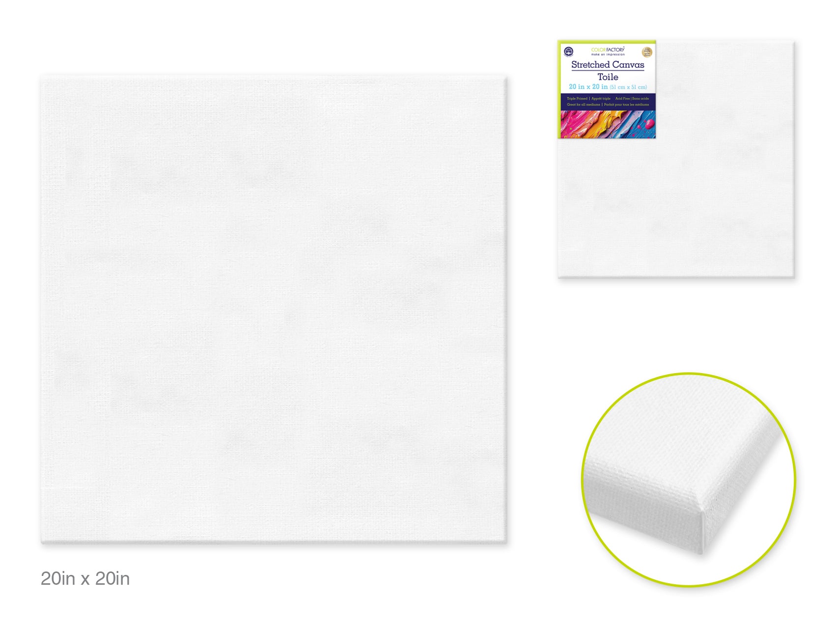 Stretch Artist Canvas: Square 20"x20" Primed Back-Stapled