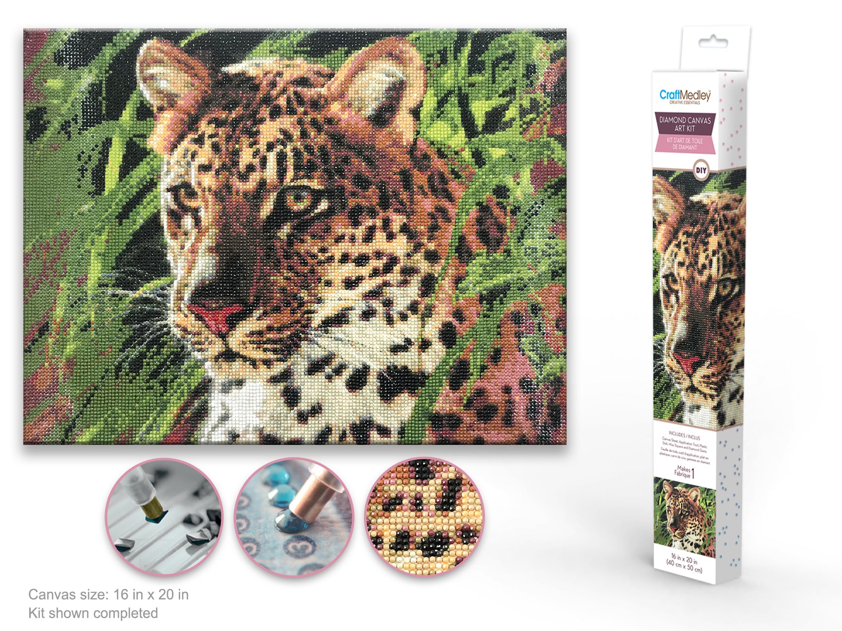 Craft Medley Kit: Diamond Painting Art Kit 15.8"x19.7" w/Gems+Tool+Tray G) Leopard