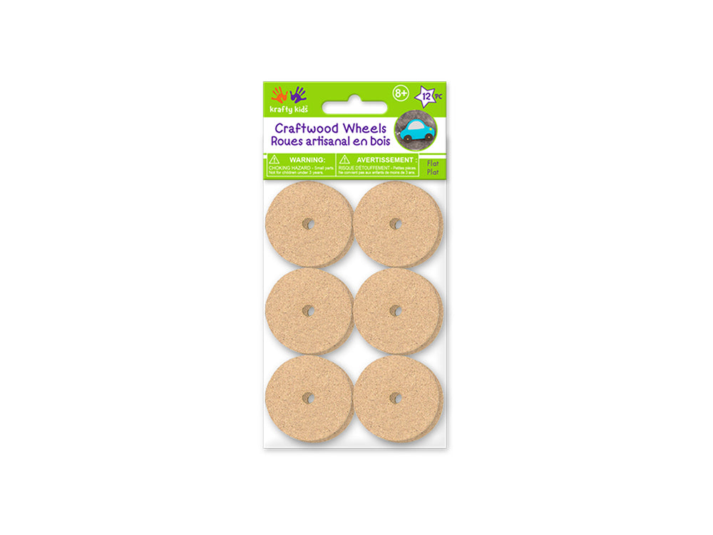 Use these crafty wood wheels with dowels to build cars, wagons, planes and more. Great for hours of crafting fun at home, at school and at camp!