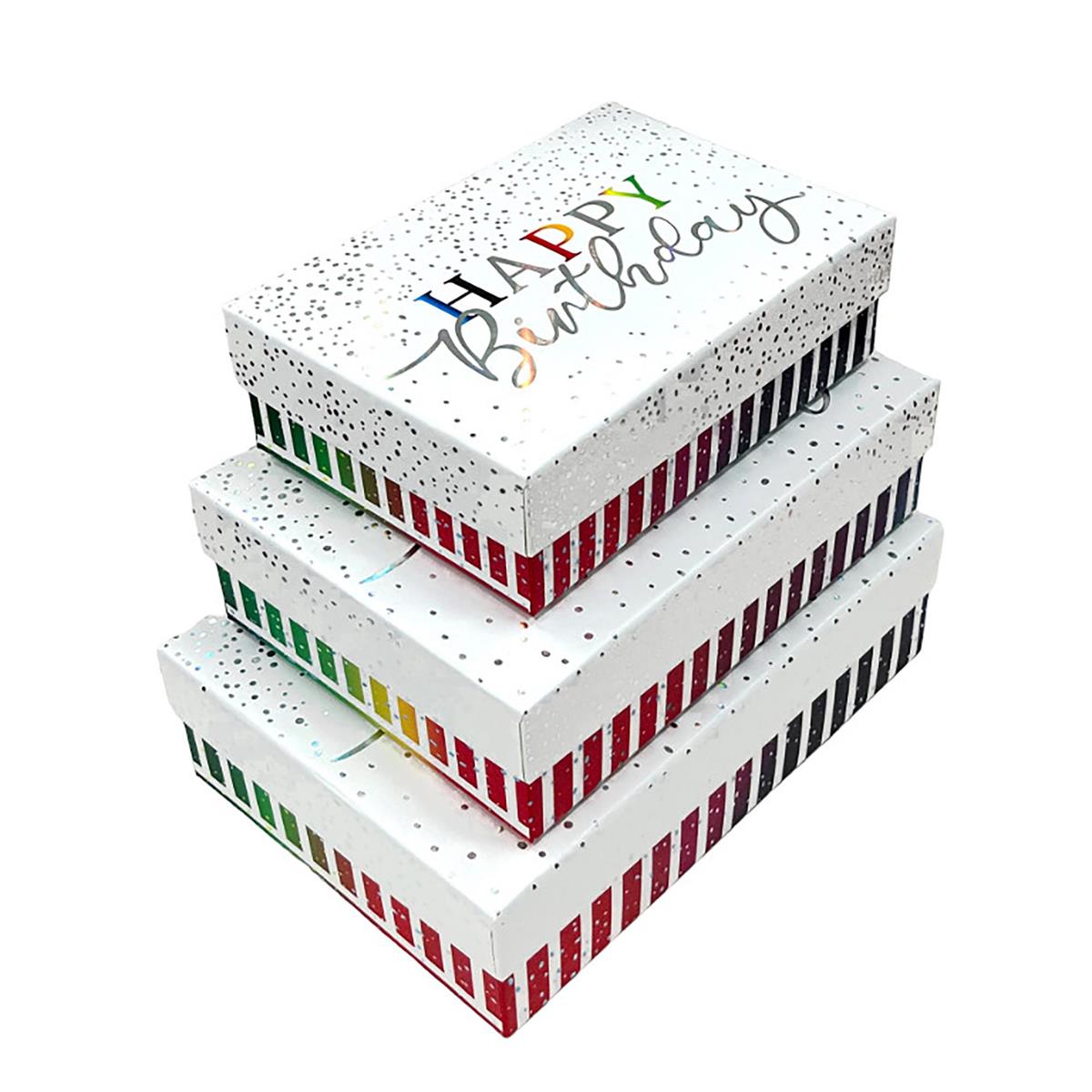 Paper T. Set/3 Bday Rect. Gift Boxes, Matte/HS, 157/1200GSM, UPC