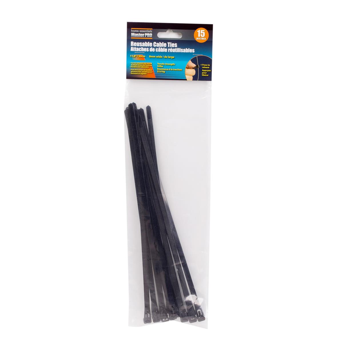 H.E. Master Pro, Reusable Cable Tie 15-PC, 8mmx11.8", Black
