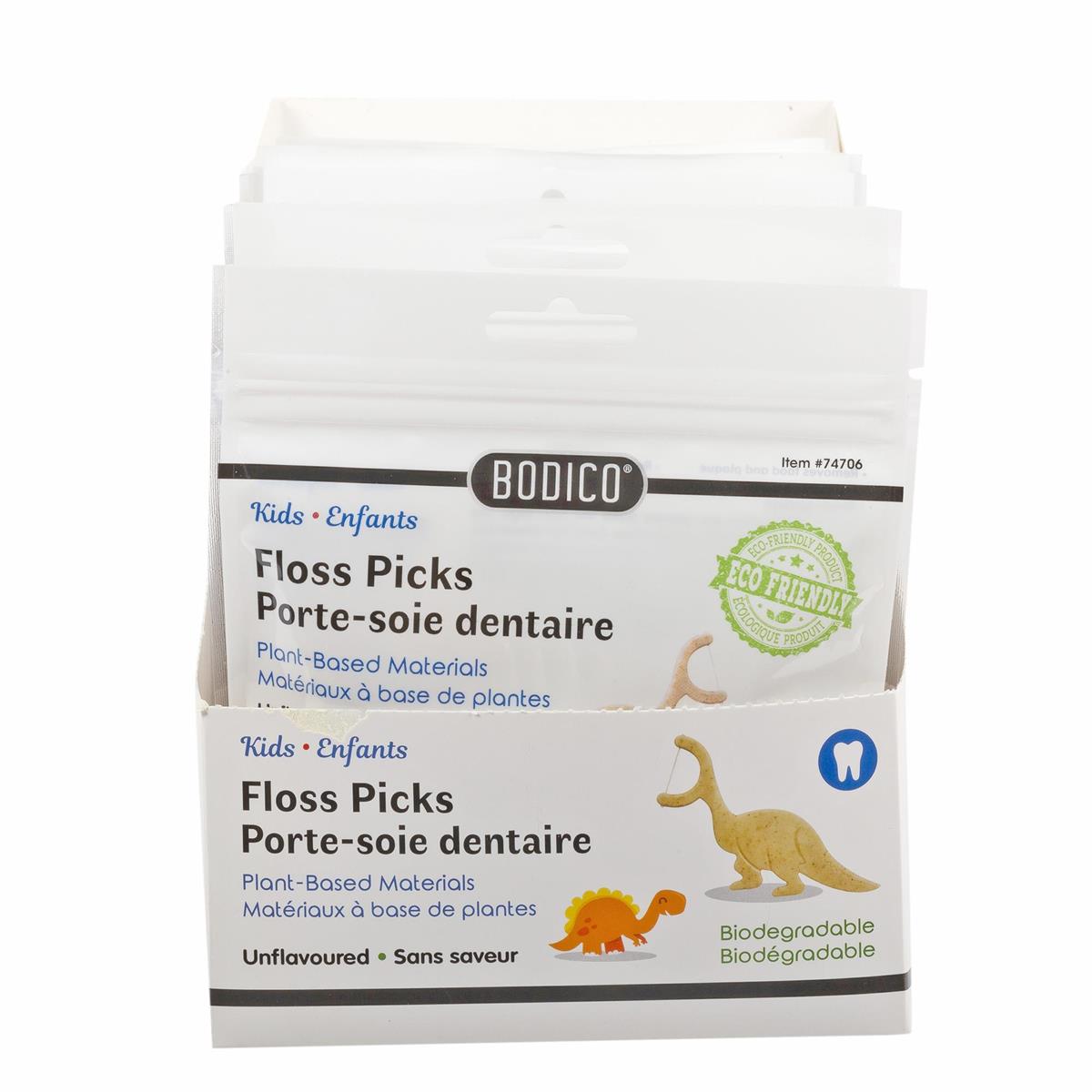 Bodico, 40pcs Kids Biodegradable Floss Pick, bag + col box