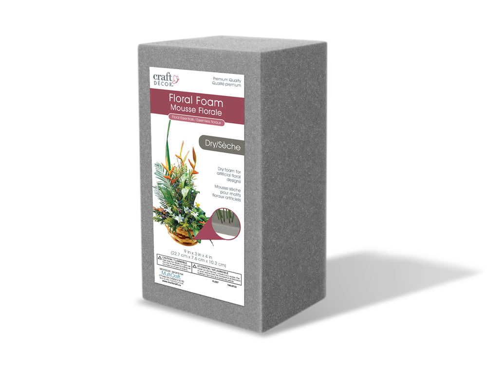 Floral Foam: For Dry/Synthetic Flowers 9"x3"x4" Shrinkwrapped 046501408945
