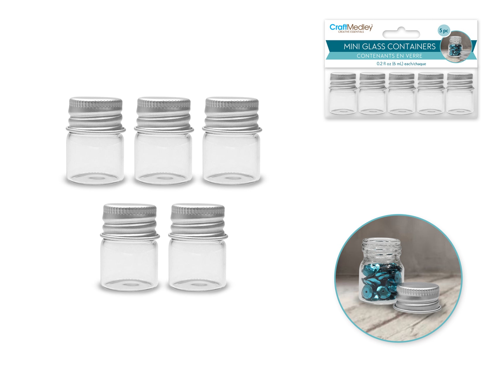 Glass Bottles: 22x30mm (6ml) Mini Containers w/Matte Aluminum Cap x5