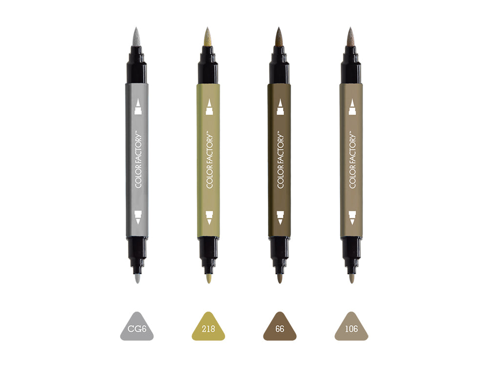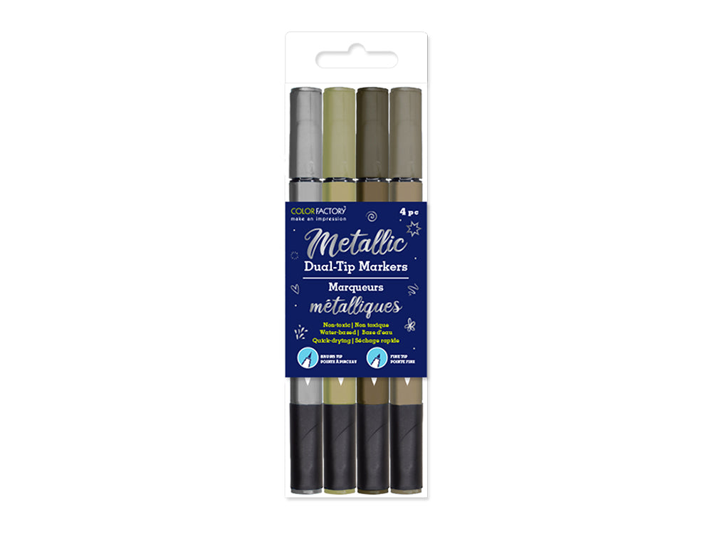 Create dazzling stroke effects with these Metallic Dual-Tip Markers. The brush tip is designed to create from super fine, to thick bold strokes, by adjusting the pressure or angle of the tip, while the fine tip allows for precise strokes. Use on paper, canvas, cardstock & more. An essential for every artist!