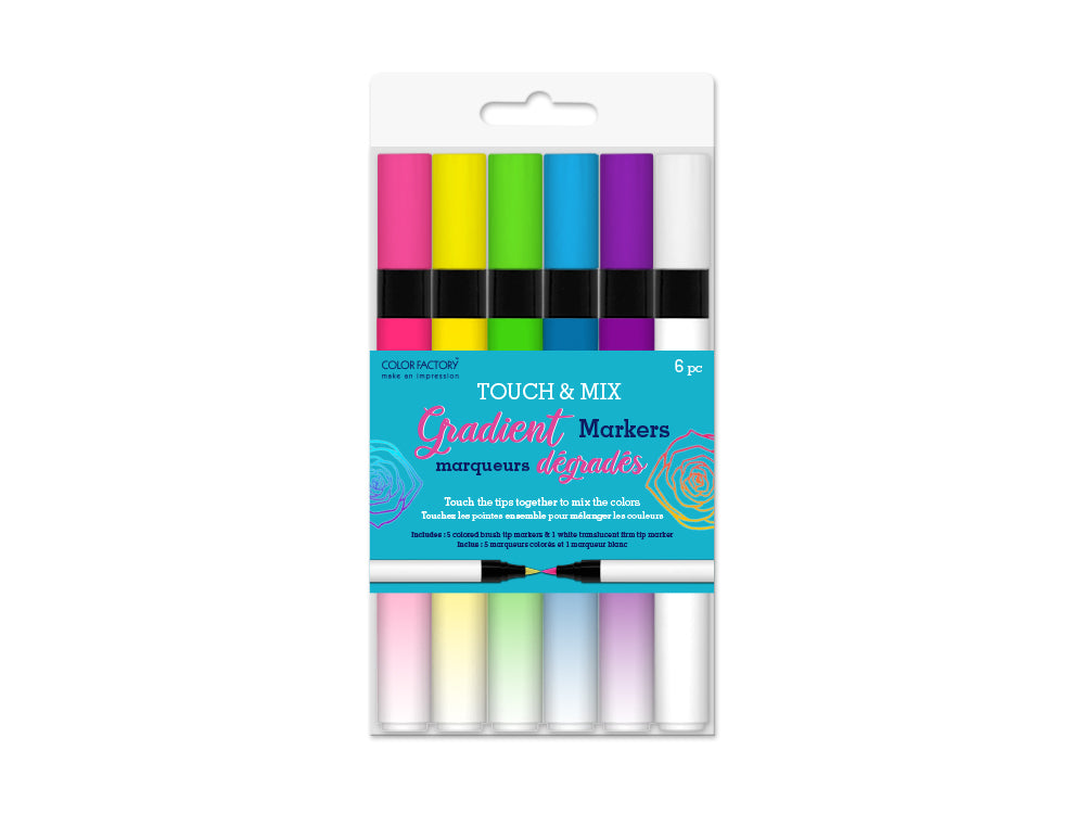 Let your creativity flow with these Touch & Mix Gradient Markers. Colored markers have a soft brush tip, while the white translucent has a firm tip to lighten any color. Use on paper, cardstock, and canvas to create a variety of gradients and color blends. An essential for every artist!