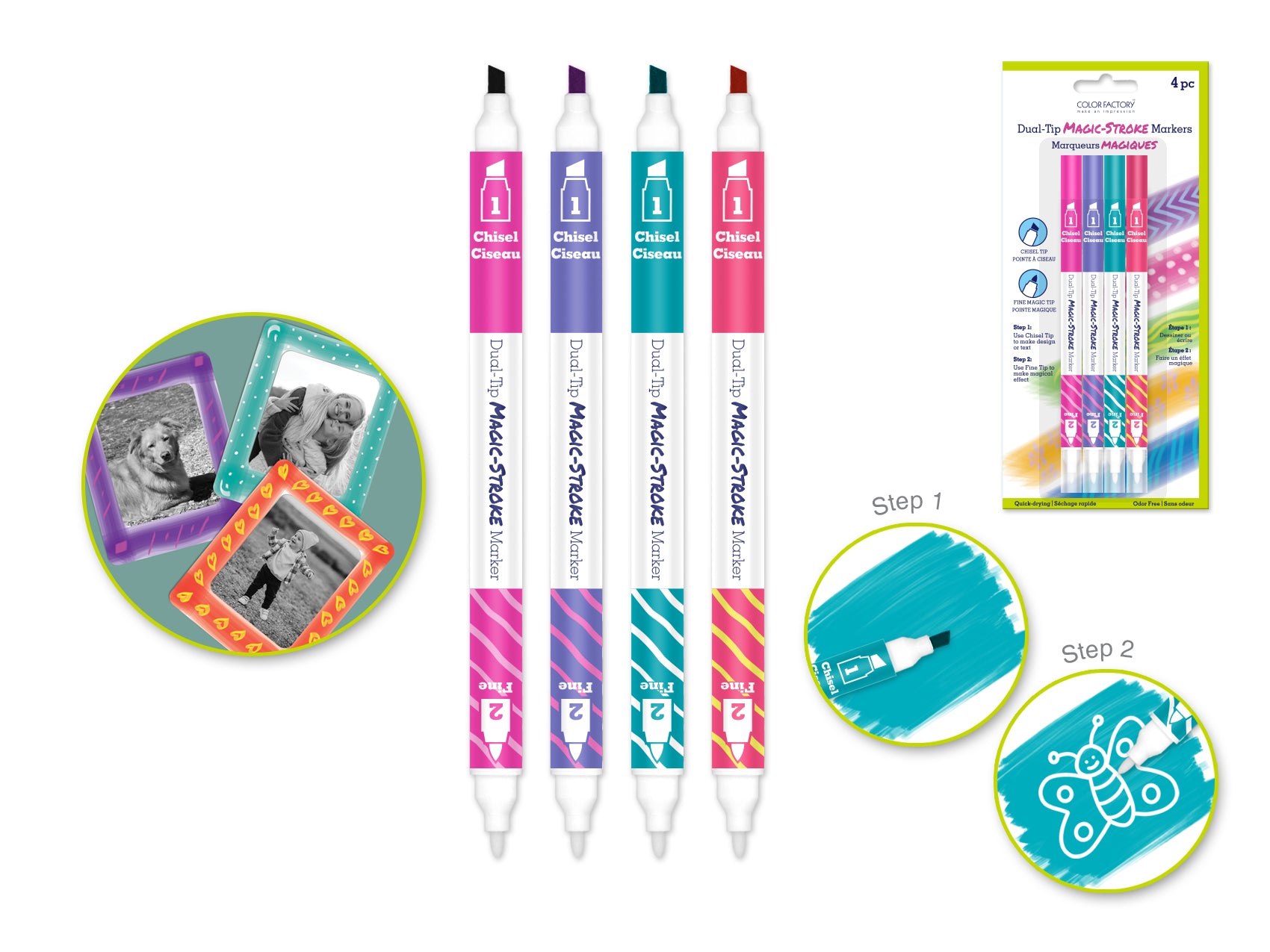Color Factory: Magic-Stroke Dual-Tip Markers 4pk (Asst) A) Brights